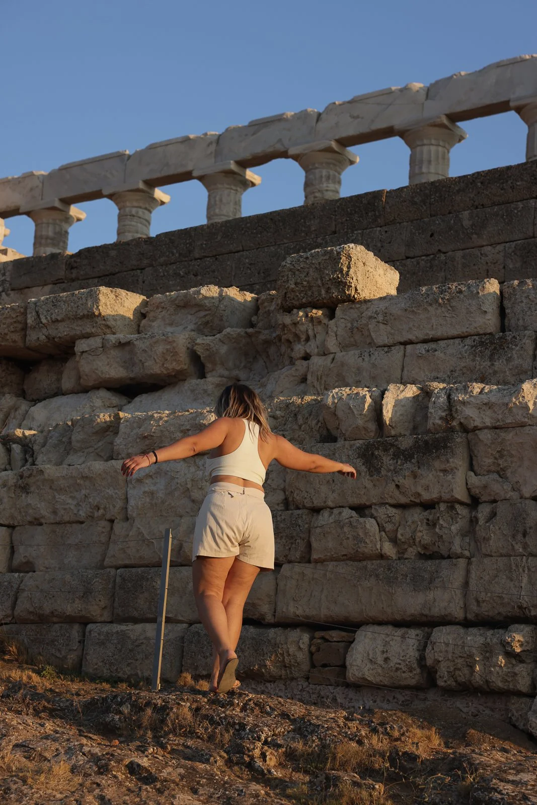 We shot paddling out under the ancient Temple of Poseidon on Cape Sounion before later hiking to the ruins themselves.